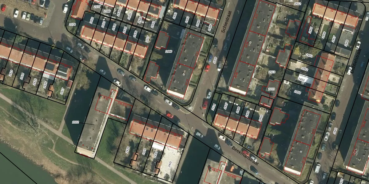 Schiestraat 21 is gelegen op kadastraal perceel DDT00I2446. Deze kadastrale aanduiding is uniek en wordt gebruikt door het Kadaster om eigendomsrechten en andere zakelijke rechten vast te leggen. Het perceel maakt onderdeel uit van de kadastrale gemeente Dordrecht.