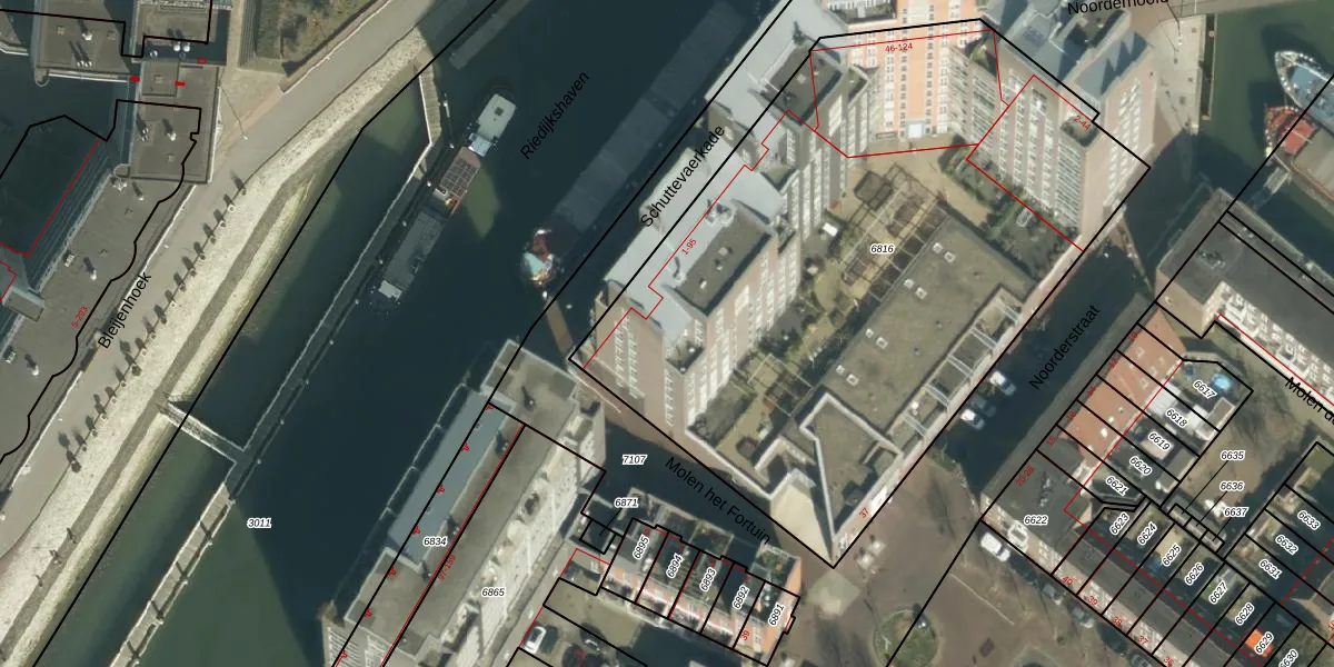 Het perceel waarop Schuttevaerkade 67 staat heeft een oppervlakte van 3810 m². Dit is een zeer groot perceel. De perceeloppervlakte wordt geregistreerd door het Kadaster. Gedetailleerde informatie over de maten van dit perceel kunt u vinden in het rapport Kadastrale kaart met maatvoering van Schuttevaerkade 67.