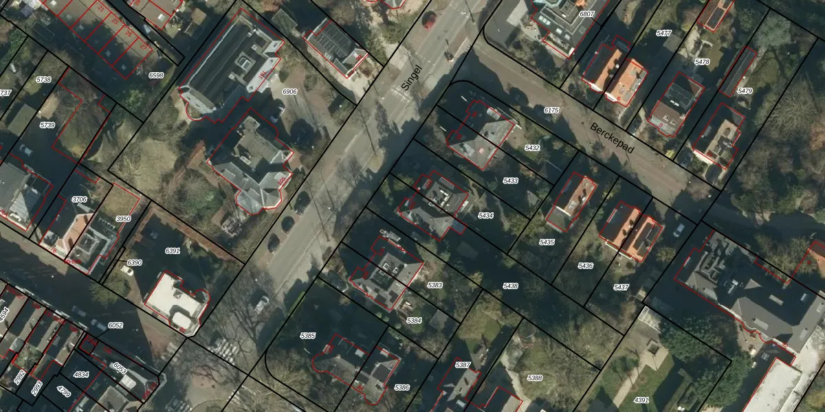 Het perceel waarop Singel 102 staat heeft een oppervlakte van 715 m². Dit is een groot perceel. De perceeloppervlakte wordt geregistreerd door het Kadaster. Gedetailleerde informatie over de maten van dit perceel kunt u vinden in het rapport Kadastrale kaart met maatvoering van Singel 102.