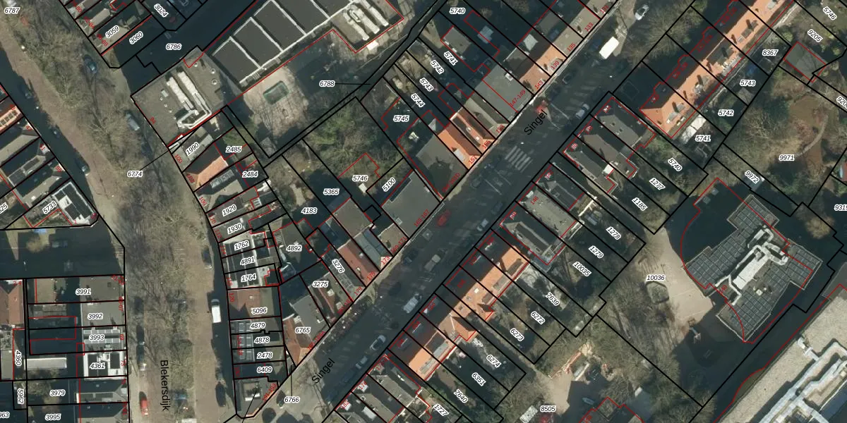 Het perceel waarop Singel 165-B staat heeft een oppervlakte van 165 m². Dit is een middelgroot perceel. De perceeloppervlakte wordt geregistreerd door het Kadaster. Gedetailleerde informatie over de maten van dit perceel kunt u vinden in het rapport Kadastrale kaart met maatvoering van Singel 165-B.