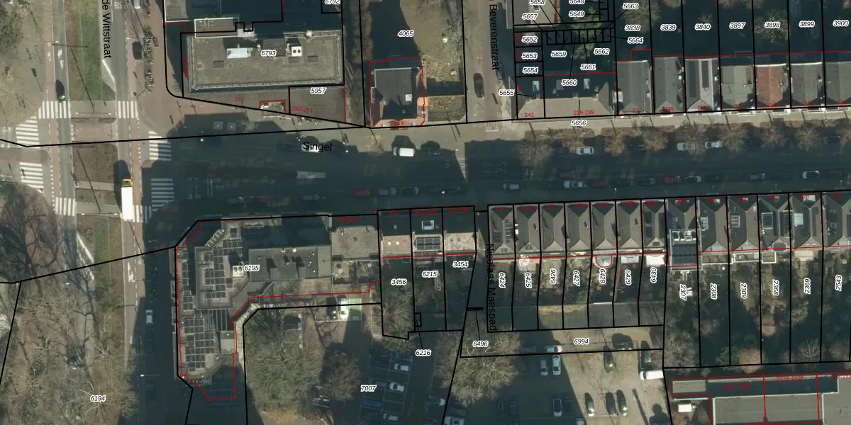 Het perceel waarop Singel 250 staat heeft een oppervlakte van 208 m². Dit is een middelgroot perceel. De perceeloppervlakte wordt geregistreerd door het Kadaster. Gedetailleerde informatie over de maten van dit perceel kunt u vinden in het rapport Kadastrale kaart met maatvoering van Singel 250.
