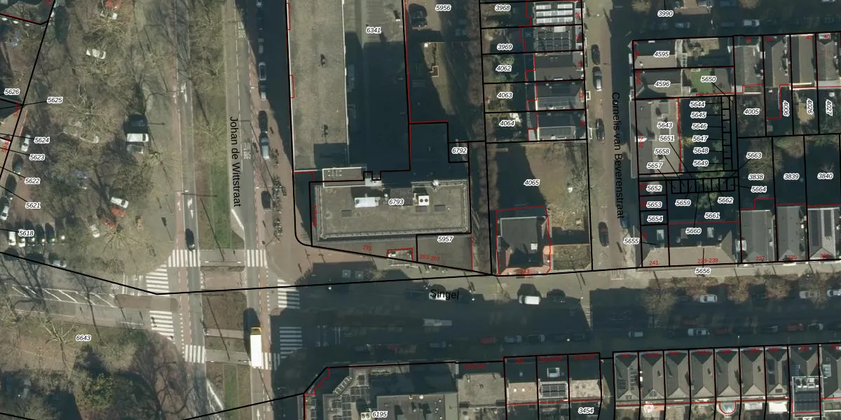Het perceel waarop Singel 263-C staat heeft een oppervlakte van 768 m². Dit is een groot perceel. De perceeloppervlakte wordt geregistreerd door het Kadaster. Gedetailleerde informatie over de maten van dit perceel kunt u vinden in het rapport Kadastrale kaart met maatvoering van Singel 263-C.