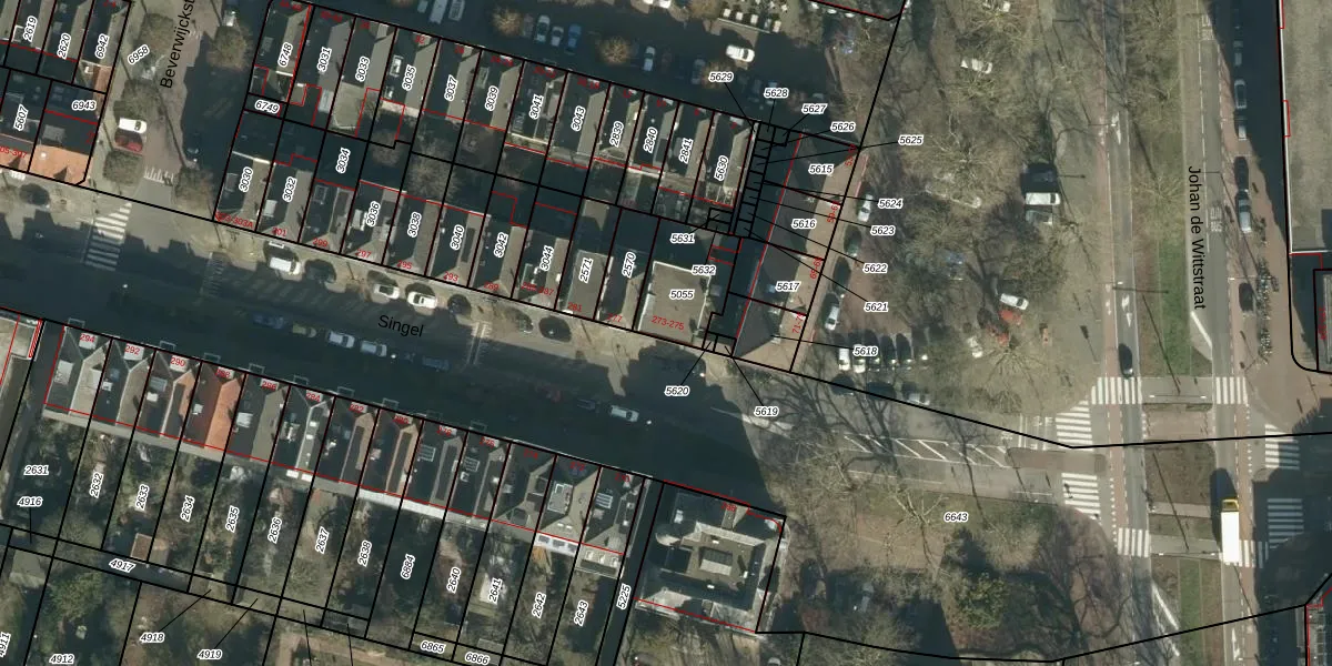 Het perceel waarop Singel 275 staat heeft een oppervlakte van 205 m². Dit is een middelgroot perceel. De perceeloppervlakte wordt geregistreerd door het Kadaster. Gedetailleerde informatie over de maten van dit perceel kunt u vinden in het rapport Kadastrale kaart met maatvoering van Singel 275.