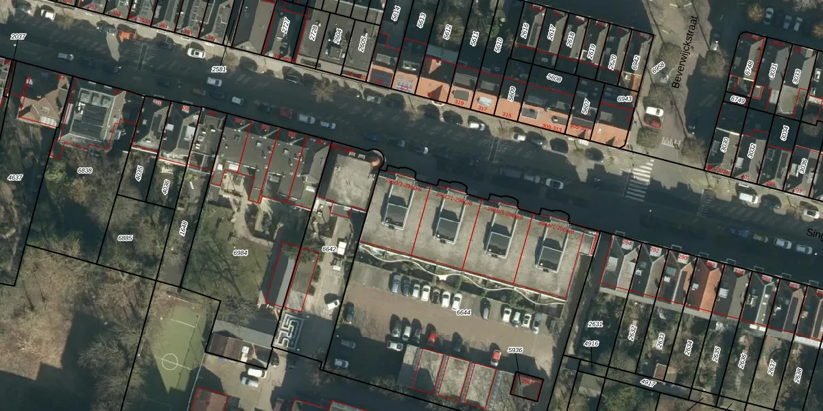 Het perceel waarop Singel 296-D-3 staat heeft een oppervlakte van 2856 m². Dit is een zeer groot perceel. De perceeloppervlakte wordt geregistreerd door het Kadaster. Gedetailleerde informatie over de maten van dit perceel kunt u vinden in het rapport Kadastrale kaart met maatvoering van Singel 296-D-3.