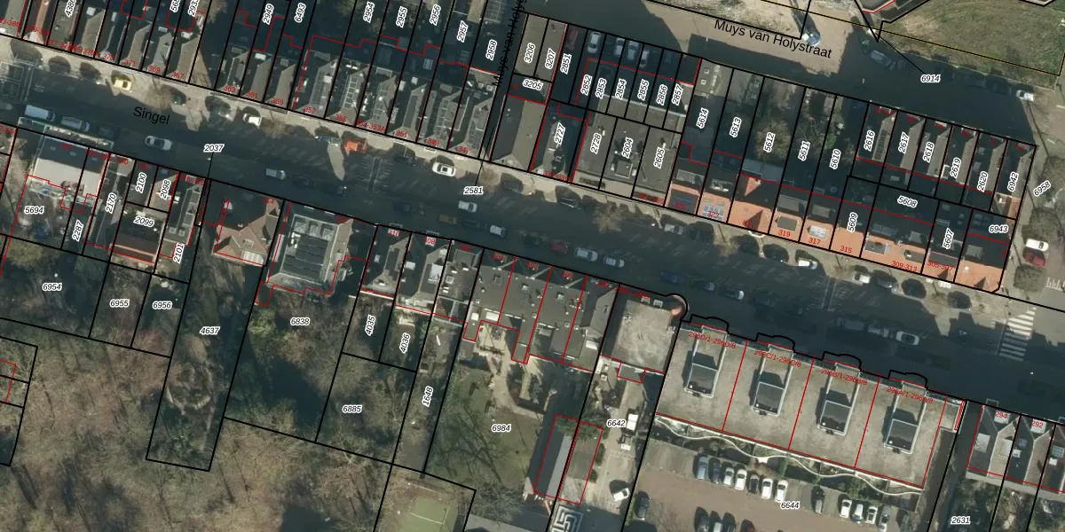 Het perceel waarop Singel 302 staat heeft een oppervlakte van 1340 m². Dit is een zeer groot perceel. De perceeloppervlakte wordt geregistreerd door het Kadaster. Gedetailleerde informatie over de maten van dit perceel kunt u vinden in het rapport Kadastrale kaart met maatvoering van Singel 302.