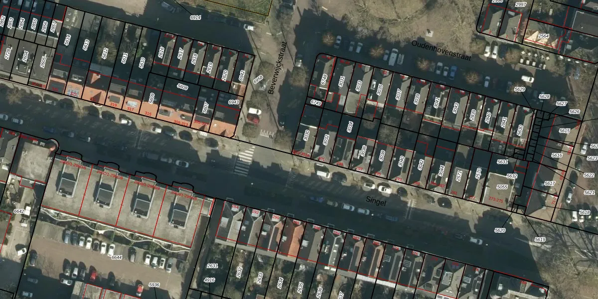 Het perceel waarop Singel 303-A staat heeft een oppervlakte van 115 m². Dit is een middelgroot perceel. De perceeloppervlakte wordt geregistreerd door het Kadaster. Gedetailleerde informatie over de maten van dit perceel kunt u vinden in het rapport Kadastrale kaart met maatvoering van Singel 303-A.