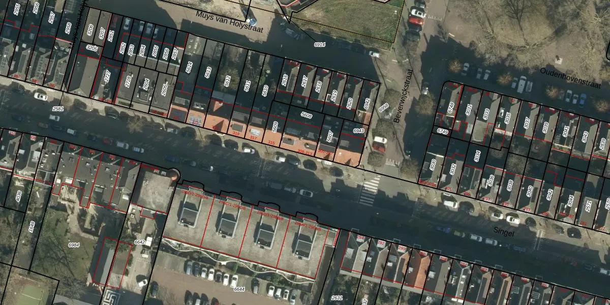 Het perceel waarop Singel 309 staat heeft een oppervlakte van 168 m². Dit is een middelgroot perceel. De perceeloppervlakte wordt geregistreerd door het Kadaster. Gedetailleerde informatie over de maten van dit perceel kunt u vinden in het rapport Kadastrale kaart met maatvoering van Singel 309.