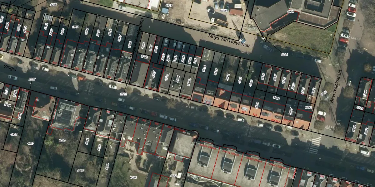 Het perceel waarop Singel 327-A staat heeft een oppervlakte van 86 m². Dit is een klein perceel. De perceeloppervlakte wordt geregistreerd door het Kadaster. Gedetailleerde informatie over de maten van dit perceel kunt u vinden in het rapport Kadastrale kaart met maatvoering van Singel 327-A.