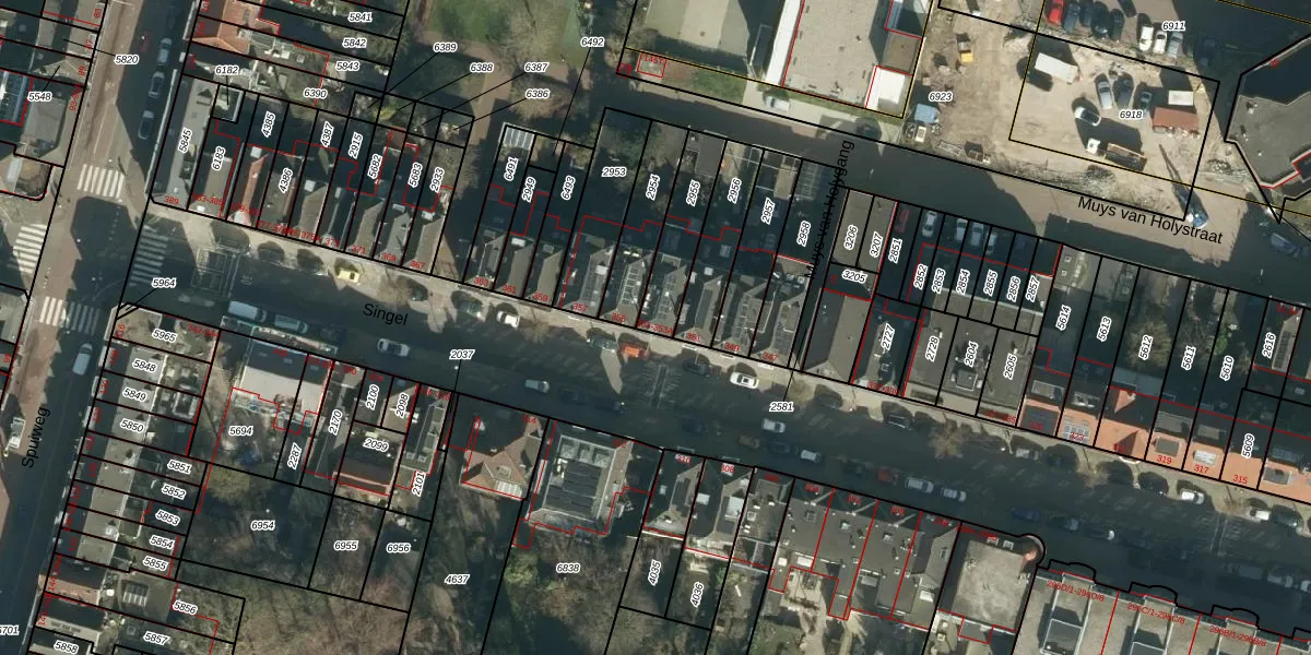 Het perceel waarop Singel 353 staat heeft een oppervlakte van 187 m². Dit is een middelgroot perceel. De perceeloppervlakte wordt geregistreerd door het Kadaster. Gedetailleerde informatie over de maten van dit perceel kunt u vinden in het rapport Kadastrale kaart met maatvoering van Singel 353.