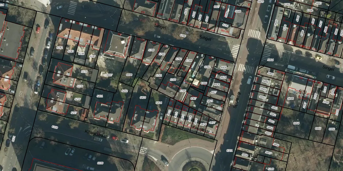 Het perceel waarop Singel 362 staat heeft een oppervlakte van 148 m². Dit is een middelgroot perceel. De perceeloppervlakte wordt geregistreerd door het Kadaster. Gedetailleerde informatie over de maten van dit perceel kunt u vinden in het rapport Kadastrale kaart met maatvoering van Singel 362.