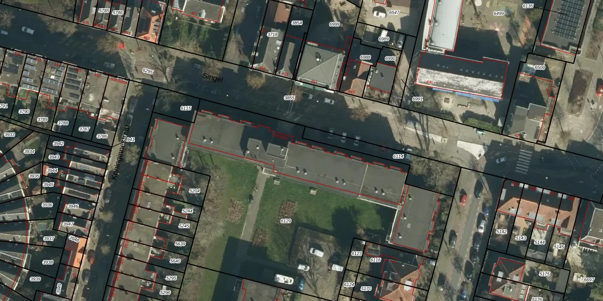 Het perceel waarop Singel 398 staat heeft een oppervlakte van 3845 m². Dit is een zeer groot perceel. De perceeloppervlakte wordt geregistreerd door het Kadaster. Gedetailleerde informatie over de maten van dit perceel kunt u vinden in het rapport Kadastrale kaart met maatvoering van Singel 398.