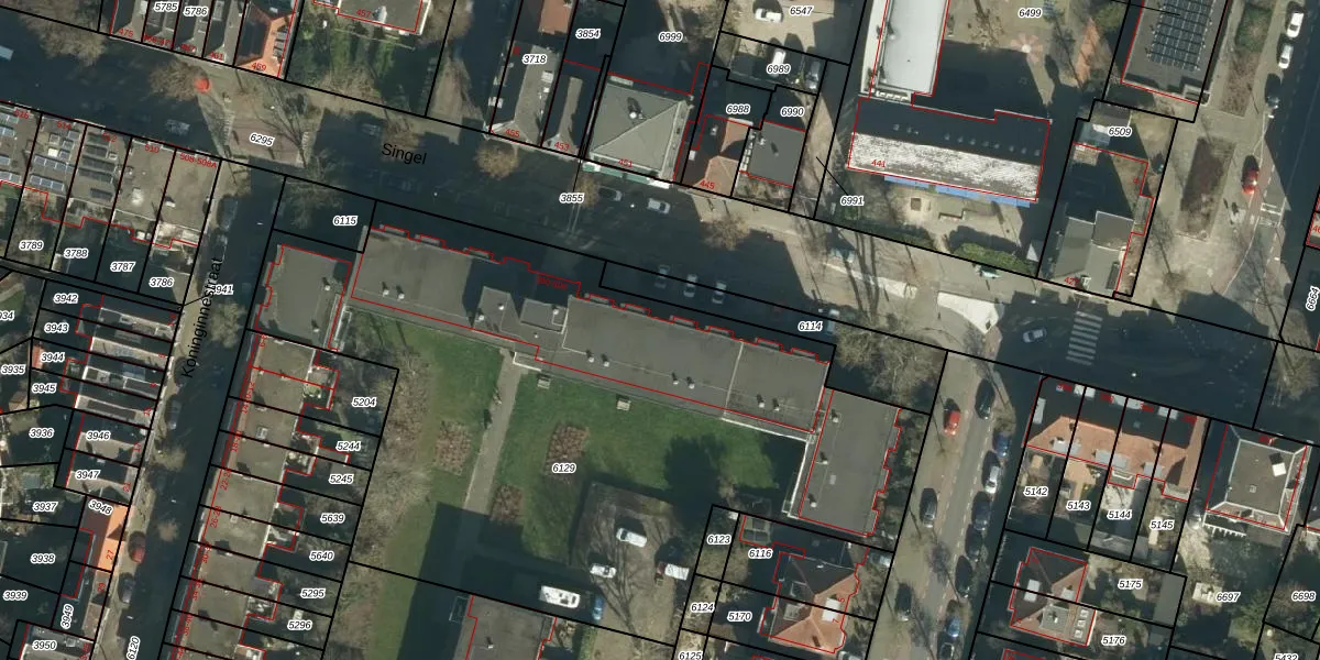 Het perceel waarop Singel 404 staat heeft een oppervlakte van 3845 m². Dit is een zeer groot perceel. De perceeloppervlakte wordt geregistreerd door het Kadaster. Gedetailleerde informatie over de maten van dit perceel kunt u vinden in het rapport Kadastrale kaart met maatvoering van Singel 404.