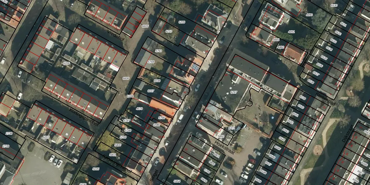 Gebruik de zoekbalk of klik op een perceel voor informatie over de adressen binnen dit perceel.