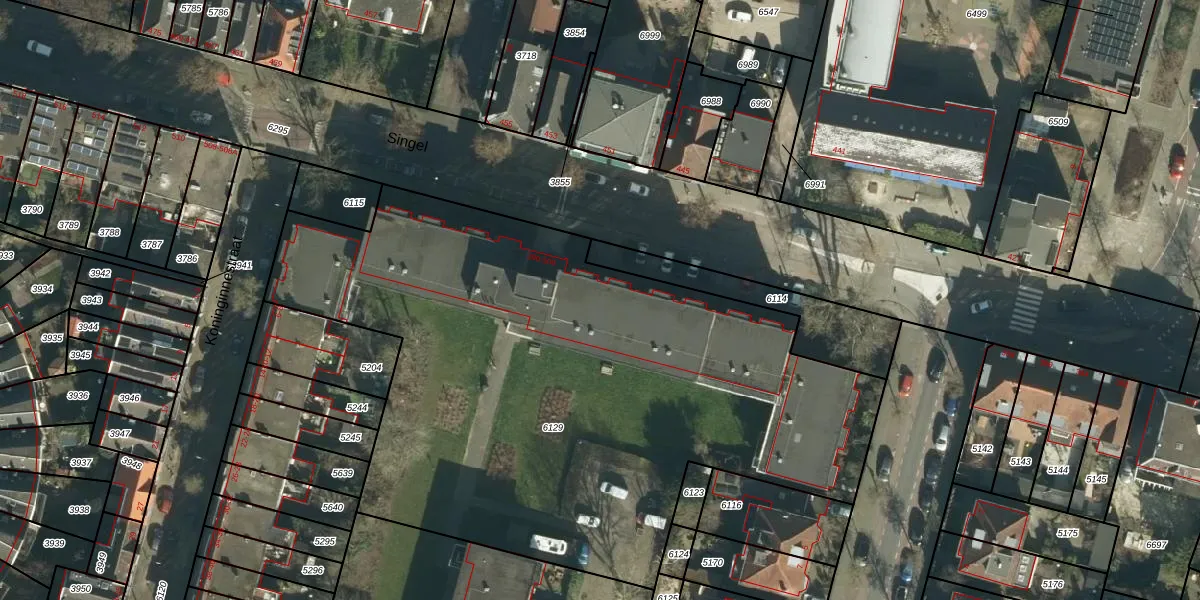 Het perceel waarop Singel 434 staat heeft een oppervlakte van 3845 m². Dit is een zeer groot perceel. De perceeloppervlakte wordt geregistreerd door het Kadaster. Gedetailleerde informatie over de maten van dit perceel kunt u vinden in het rapport Kadastrale kaart met maatvoering van Singel 434.