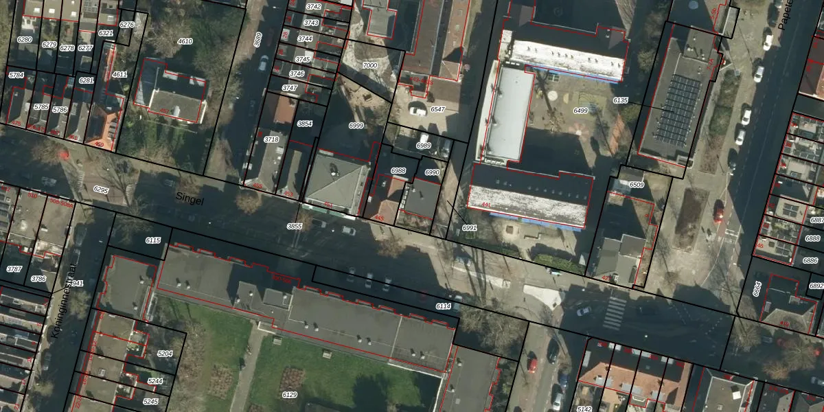 Het perceel waarop Singel 445 staat heeft een oppervlakte van 147 m². Dit is een middelgroot perceel. De perceeloppervlakte wordt geregistreerd door het Kadaster. Gedetailleerde informatie over de maten van dit perceel kunt u vinden in het rapport Kadastrale kaart met maatvoering van Singel 445.