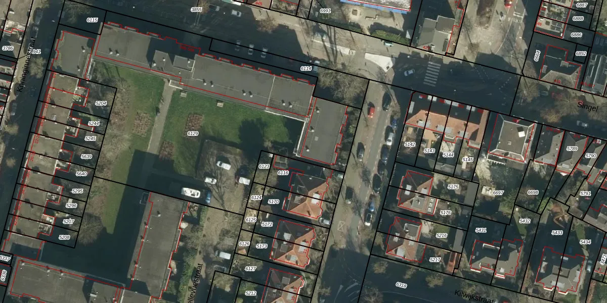 Het perceel waarop Singel 450 staat heeft een oppervlakte van 3845 m². Dit is een zeer groot perceel. De perceeloppervlakte wordt geregistreerd door het Kadaster. Gedetailleerde informatie over de maten van dit perceel kunt u vinden in het rapport Kadastrale kaart met maatvoering van Singel 450.