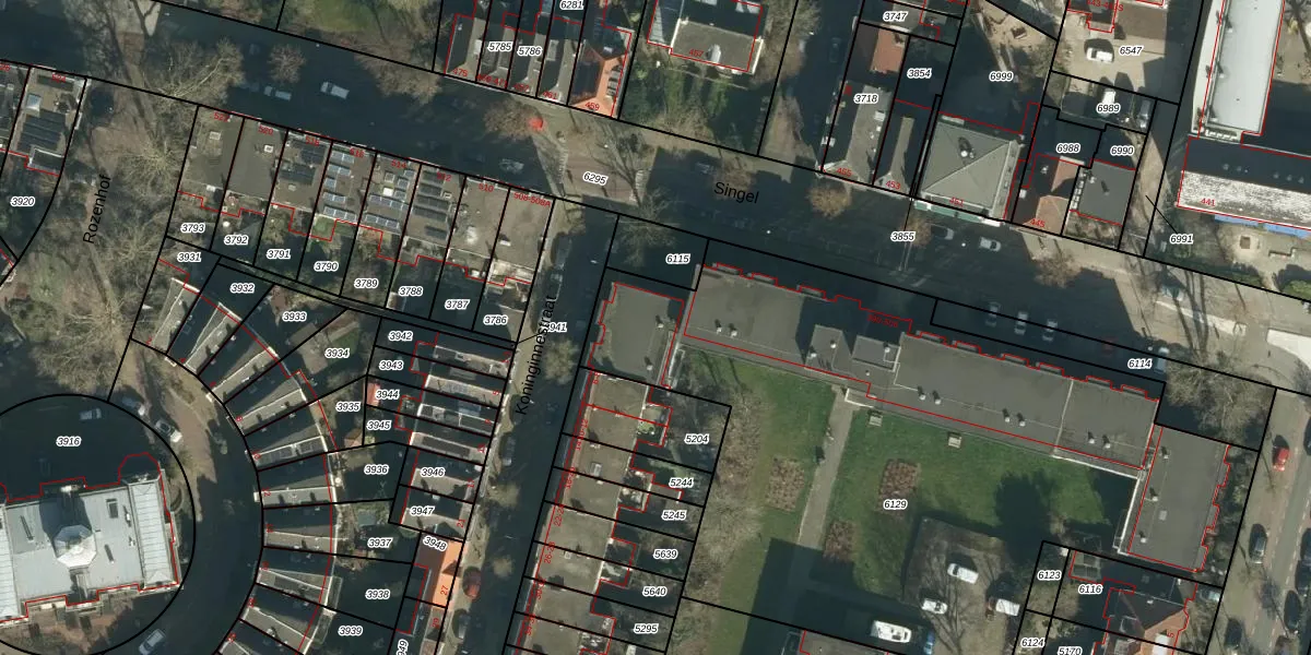Het perceel waarop Singel 476 staat heeft een oppervlakte van 3845 m². Dit is een zeer groot perceel. De perceeloppervlakte wordt geregistreerd door het Kadaster. Gedetailleerde informatie over de maten van dit perceel kunt u vinden in het rapport Kadastrale kaart met maatvoering van Singel 476.