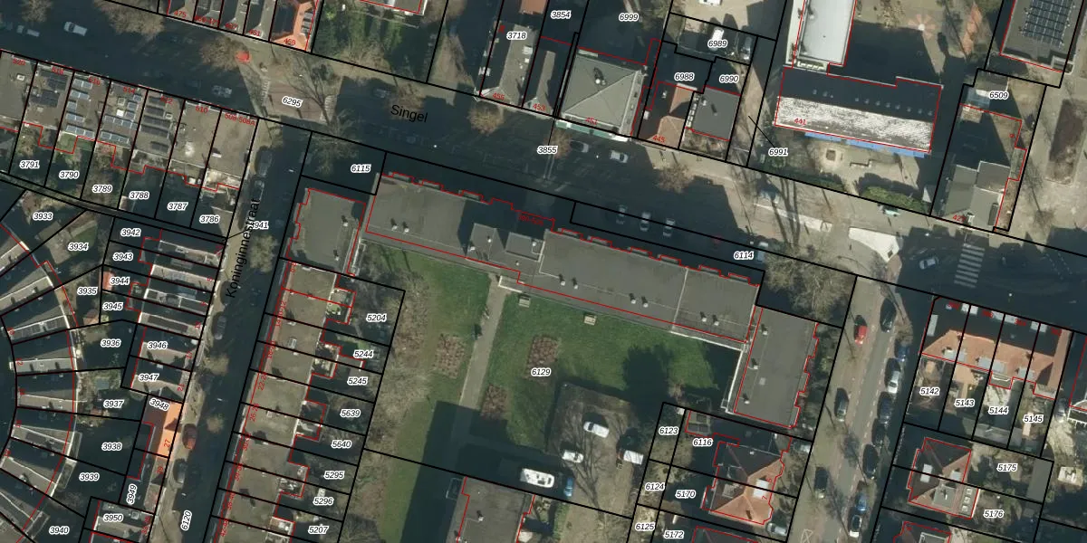 Het perceel waarop Singel 504 staat heeft een oppervlakte van 3845 m². Dit is een zeer groot perceel. De perceeloppervlakte wordt geregistreerd door het Kadaster. Gedetailleerde informatie over de maten van dit perceel kunt u vinden in het rapport Kadastrale kaart met maatvoering van Singel 504.