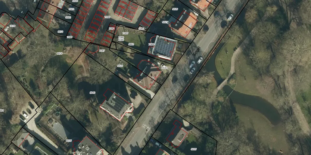 Het perceel waarop Singel 83 staat heeft een oppervlakte van 365 m². Dit is een groot perceel. De perceeloppervlakte wordt geregistreerd door het Kadaster. Gedetailleerde informatie over de maten van dit perceel kunt u vinden in het rapport Kadastrale kaart met maatvoering van Singel 83.