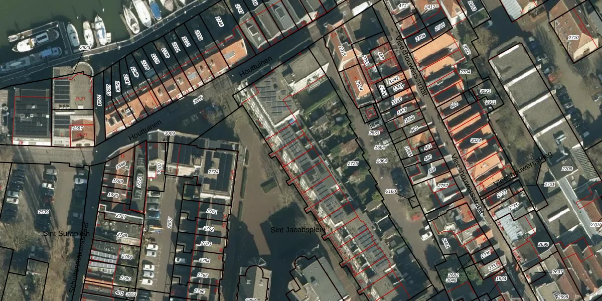 Het perceel waarop Sint Jacobsplein 13-A staat heeft een oppervlakte van 2190 m². Dit is een zeer groot perceel. De perceeloppervlakte wordt geregistreerd door het Kadaster. Gedetailleerde informatie over de maten van dit perceel kunt u vinden in het rapport Kadastrale kaart met maatvoering van Sint Jacobsplein 13-A.