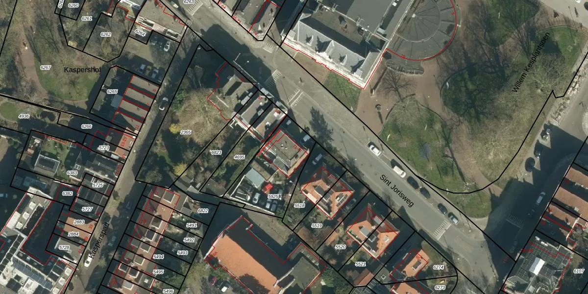 Het perceel waarop Sint Jorisweg 73 staat heeft een oppervlakte van 560 m². Dit is een groot perceel. De perceeloppervlakte wordt geregistreerd door het Kadaster. Gedetailleerde informatie over de maten van dit perceel kunt u vinden in het rapport Kadastrale kaart met maatvoering van Sint Jorisweg 73.