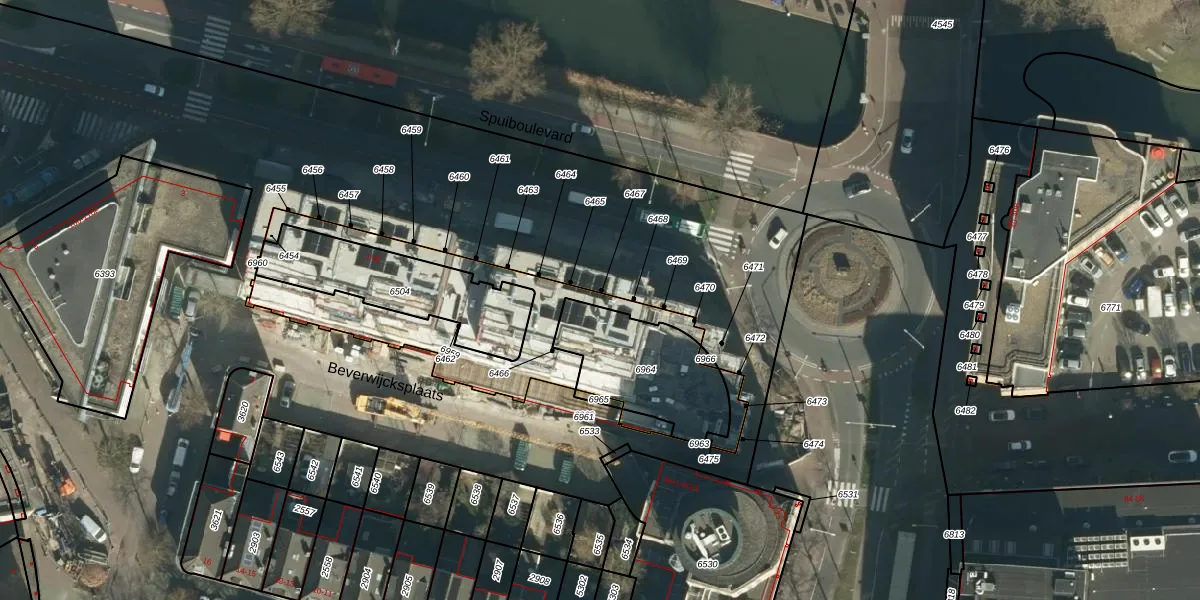 Het perceel waarop Spuiboulevard 14 staat heeft een oppervlakte van 580 m². Dit is een groot perceel. De perceeloppervlakte wordt geregistreerd door het Kadaster. Gedetailleerde informatie over de maten van dit perceel kunt u vinden in het rapport Kadastrale kaart met maatvoering van Spuiboulevard 14.