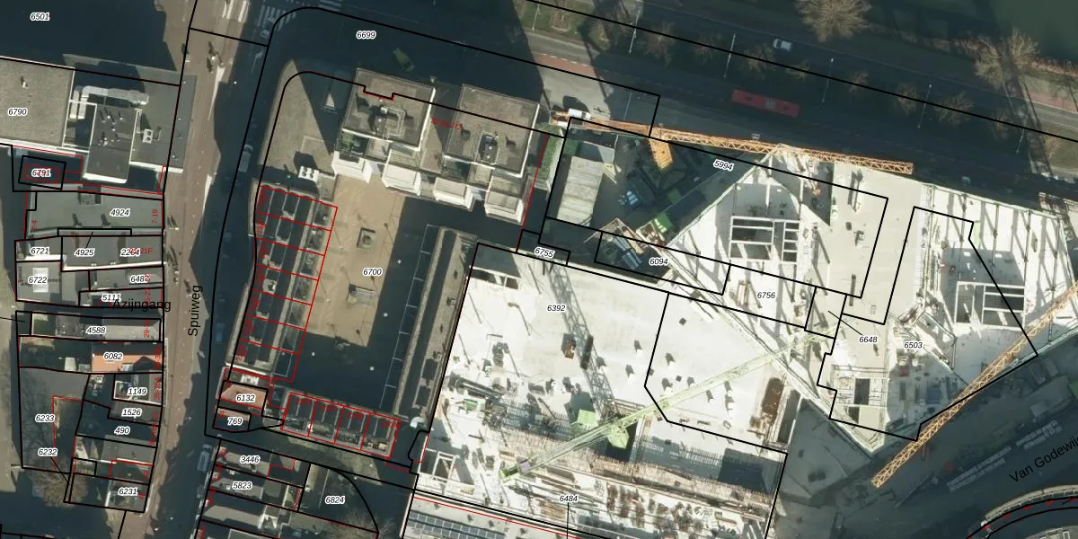 Het perceel waarop Spuiboulevard 214 staat heeft een oppervlakte van 2455 m². Dit is een zeer groot perceel. De perceeloppervlakte wordt geregistreerd door het Kadaster. Gedetailleerde informatie over de maten van dit perceel kunt u vinden in het rapport Kadastrale kaart met maatvoering van Spuiboulevard 214.