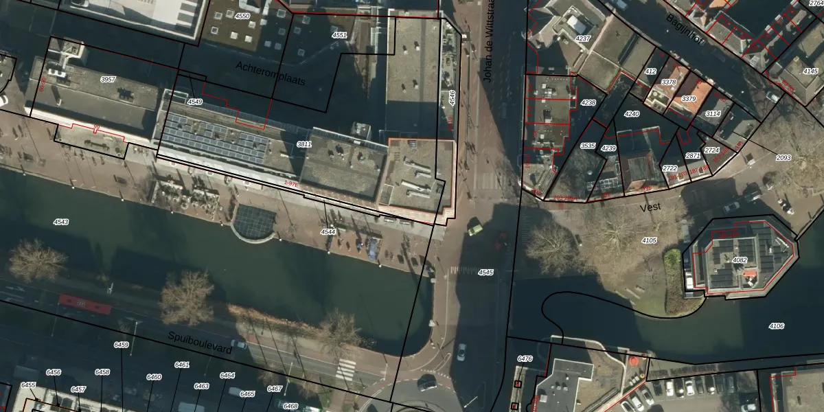 Het perceel waarop Spuiboulevard 25-A staat heeft een oppervlakte van 1915 m². Dit is een zeer groot perceel. De perceeloppervlakte wordt geregistreerd door het Kadaster. Gedetailleerde informatie over de maten van dit perceel kunt u vinden in het rapport Kadastrale kaart met maatvoering van Spuiboulevard 25-A.