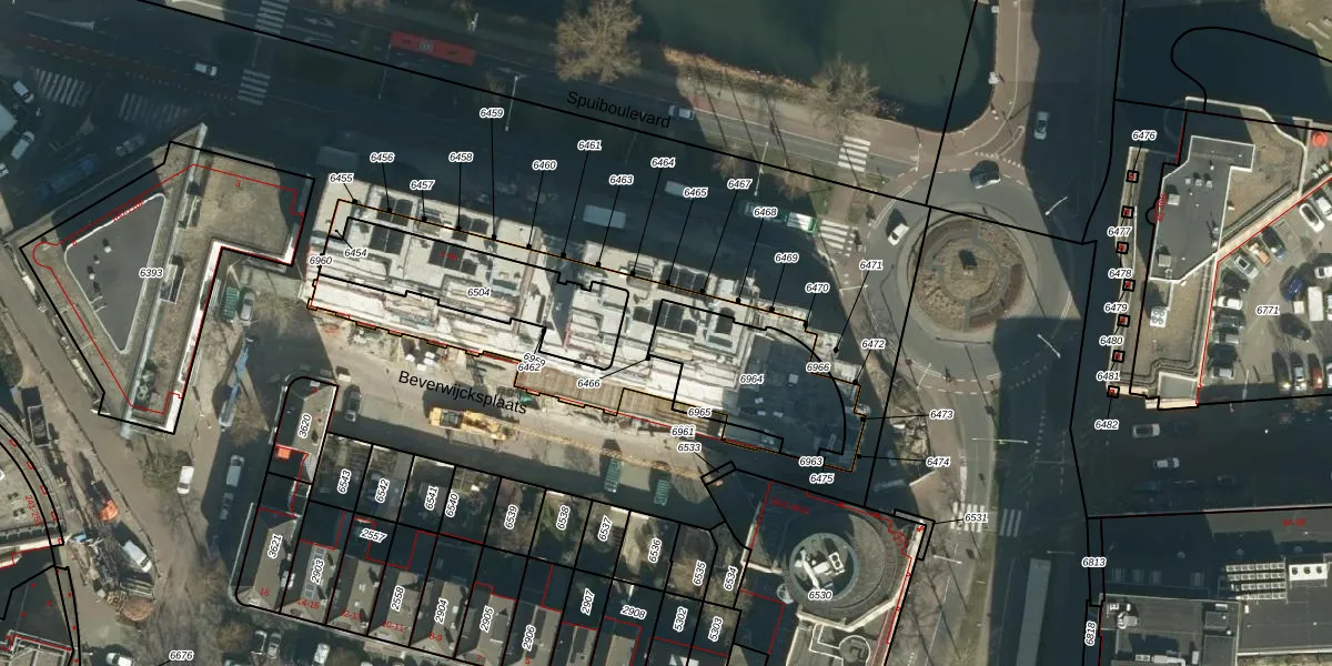Het perceel waarop Spuiboulevard 26 staat heeft een oppervlakte van 406 m². Dit is een groot perceel. De perceeloppervlakte wordt geregistreerd door het Kadaster. Gedetailleerde informatie over de maten van dit perceel kunt u vinden in het rapport Kadastrale kaart met maatvoering van Spuiboulevard 26.