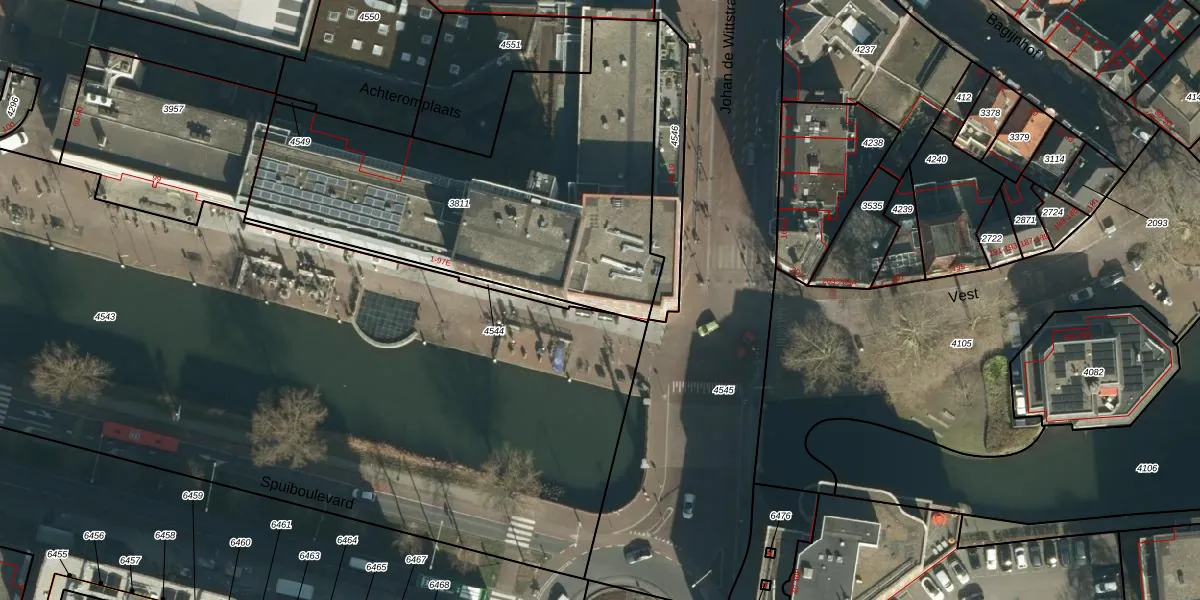 Het perceel waarop Spuiboulevard 3 staat heeft een oppervlakte van 1915 m². Dit is een zeer groot perceel. De perceeloppervlakte wordt geregistreerd door het Kadaster. Gedetailleerde informatie over de maten van dit perceel kunt u vinden in het rapport Kadastrale kaart met maatvoering van Spuiboulevard 3.