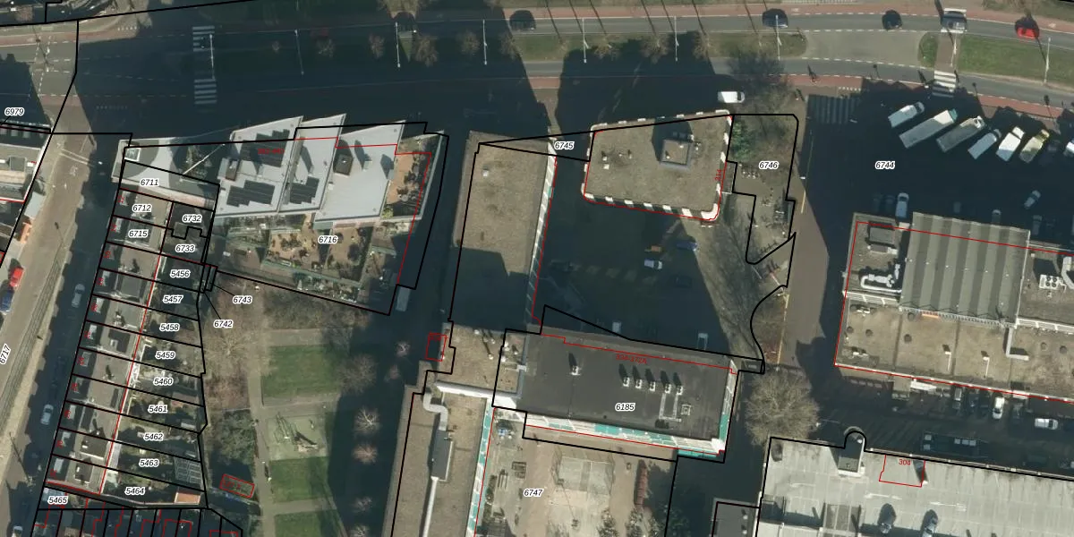 Het perceel waarop Spuiboulevard 358 staat heeft een oppervlakte van 3992 m². Dit is een zeer groot perceel. De perceeloppervlakte wordt geregistreerd door het Kadaster. Gedetailleerde informatie over de maten van dit perceel kunt u vinden in het rapport Kadastrale kaart met maatvoering van Spuiboulevard 358.