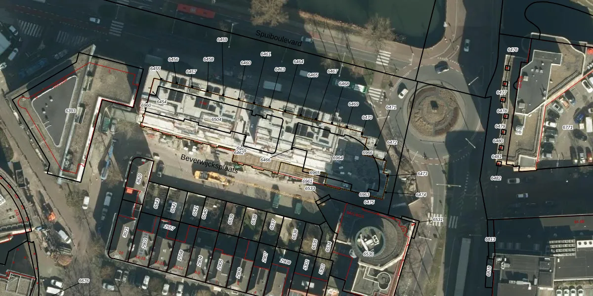 Het perceel waarop Spuiboulevard 40 staat heeft een oppervlakte van 406 m². Dit is een groot perceel. De perceeloppervlakte wordt geregistreerd door het Kadaster. Gedetailleerde informatie over de maten van dit perceel kunt u vinden in het rapport Kadastrale kaart met maatvoering van Spuiboulevard 40.