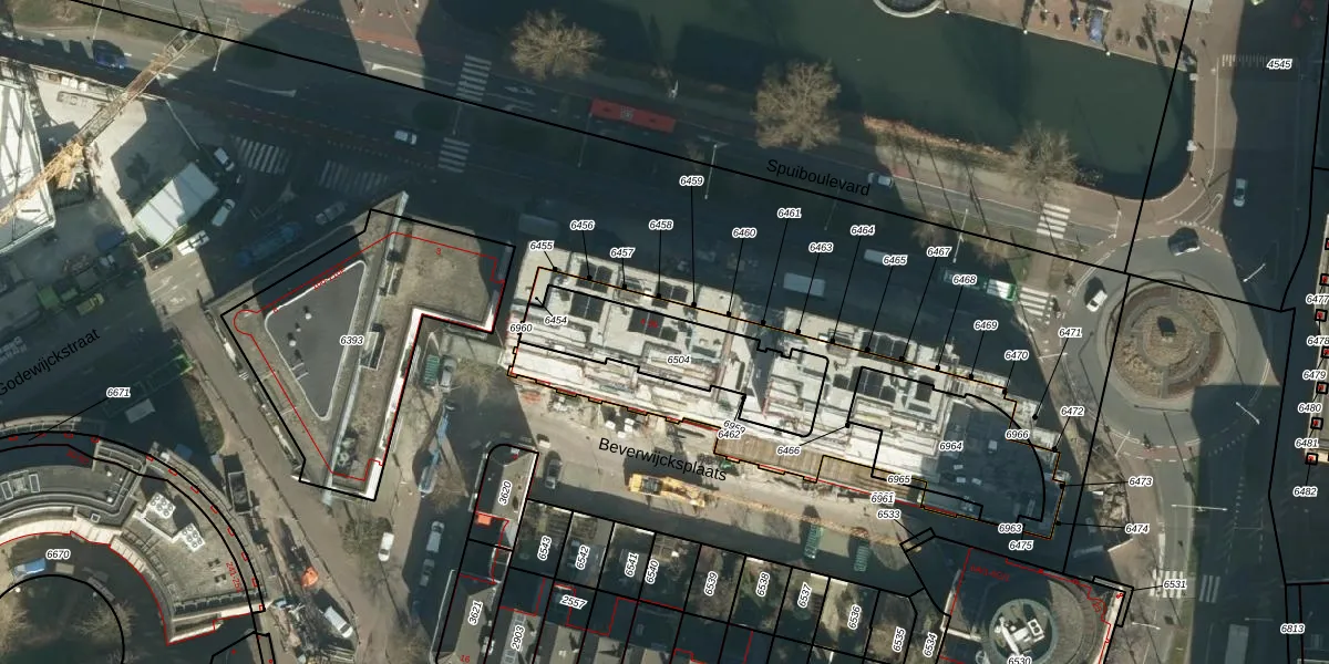 Het perceel waarop Spuiboulevard 60 staat heeft een oppervlakte van 439 m². Dit is een groot perceel. De perceeloppervlakte wordt geregistreerd door het Kadaster. Gedetailleerde informatie over de maten van dit perceel kunt u vinden in het rapport Kadastrale kaart met maatvoering van Spuiboulevard 60.