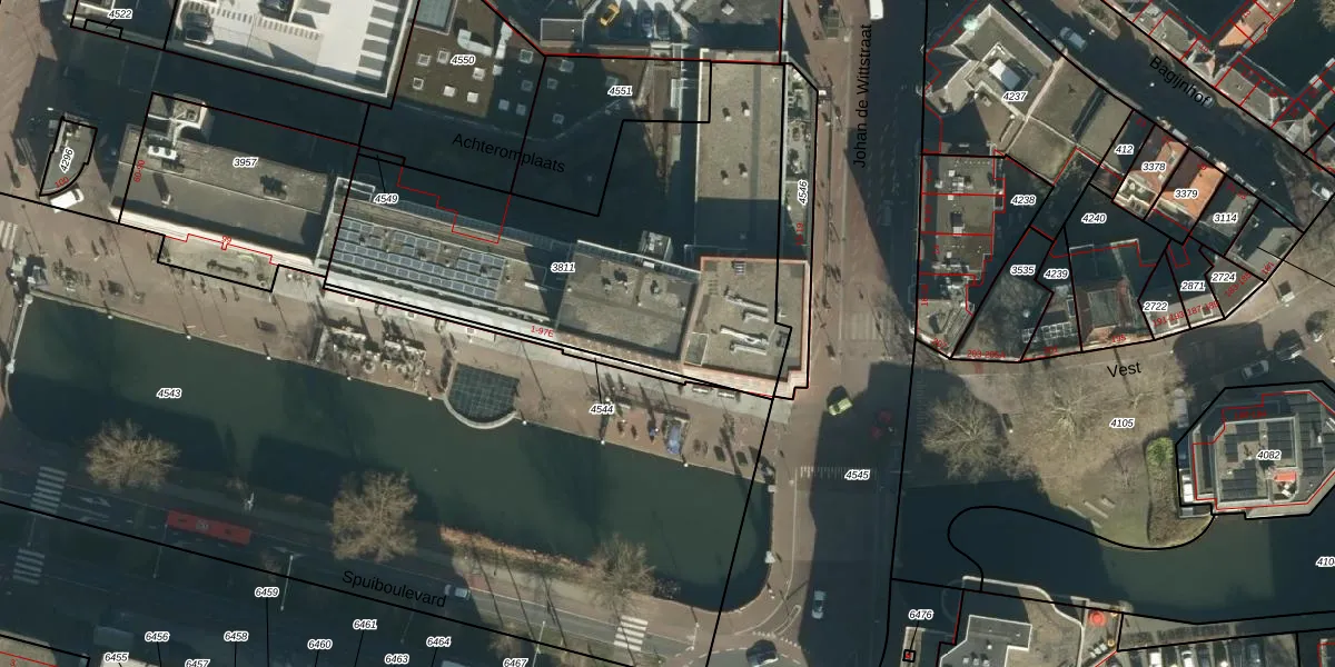 Het perceel waarop Spuiboulevard 63 staat heeft een oppervlakte van 1915 m². Dit is een zeer groot perceel. De perceeloppervlakte wordt geregistreerd door het Kadaster. Gedetailleerde informatie over de maten van dit perceel kunt u vinden in het rapport Kadastrale kaart met maatvoering van Spuiboulevard 63.