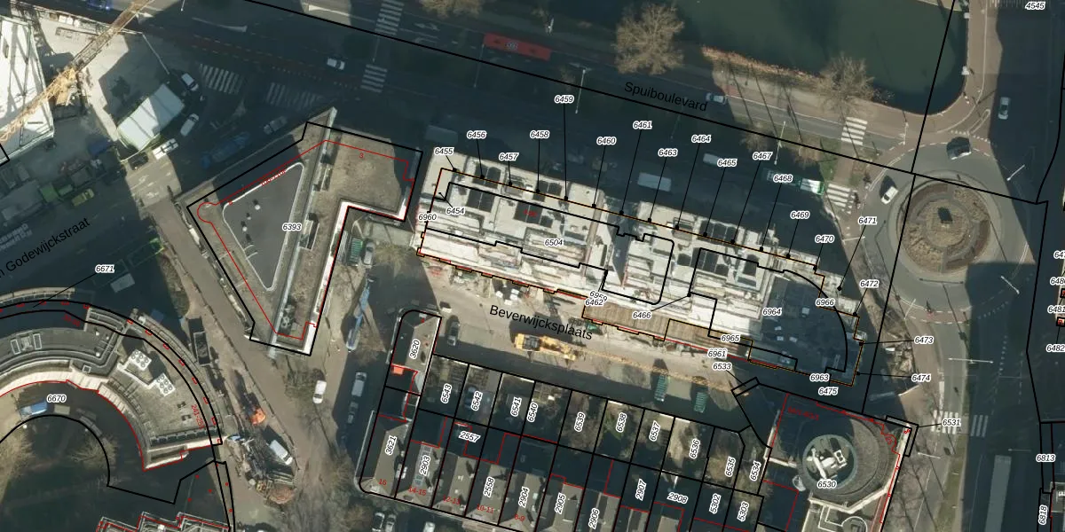 Het perceel waarop Spuiboulevard 86 staat heeft een oppervlakte van 580 m². Dit is een groot perceel. De perceeloppervlakte wordt geregistreerd door het Kadaster. Gedetailleerde informatie over de maten van dit perceel kunt u vinden in het rapport Kadastrale kaart met maatvoering van Spuiboulevard 86.