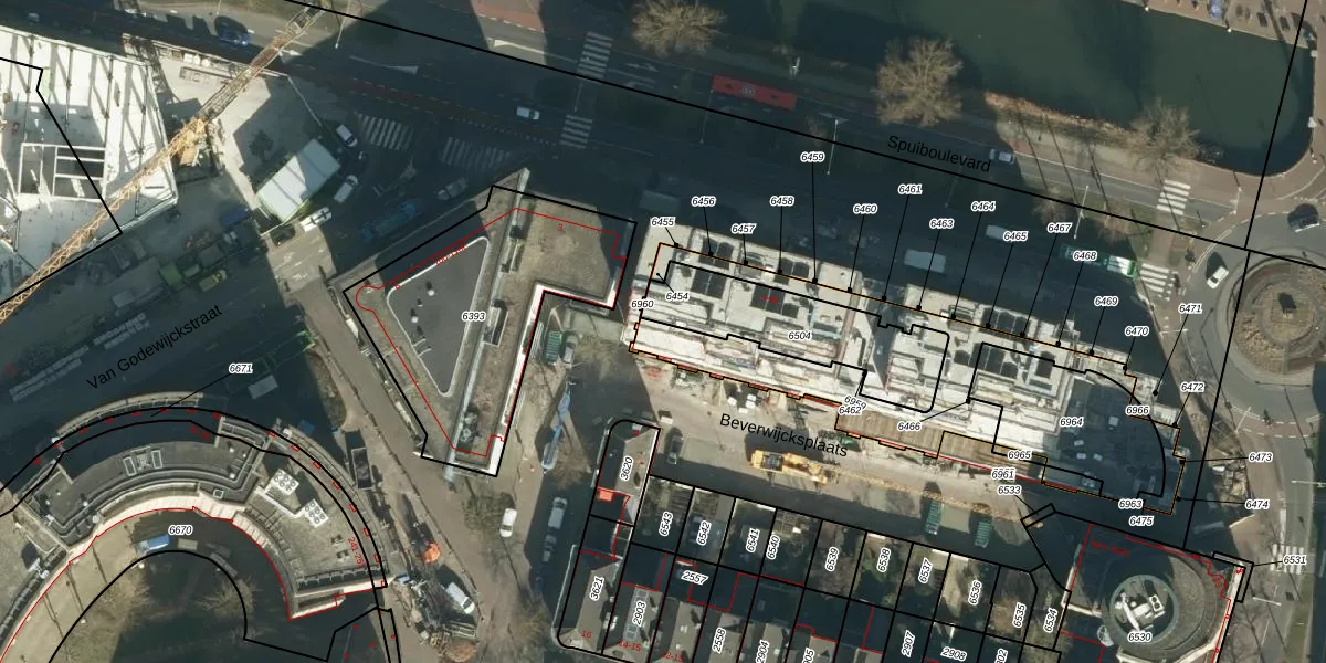 Het perceel waarop Spuiboulevard 90 staat heeft een oppervlakte van 580 m². Dit is een groot perceel. De perceeloppervlakte wordt geregistreerd door het Kadaster. Gedetailleerde informatie over de maten van dit perceel kunt u vinden in het rapport Kadastrale kaart met maatvoering van Spuiboulevard 90.