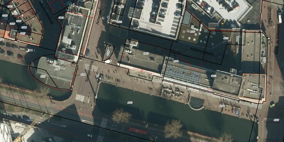 Het perceel waarop Spuiboulevard 99 staat heeft een oppervlakte van 722 m². Dit is een groot perceel. De perceeloppervlakte wordt geregistreerd door het Kadaster. Gedetailleerde informatie over de maten van dit perceel kunt u vinden in het rapport Kadastrale kaart met maatvoering van Spuiboulevard 99.
