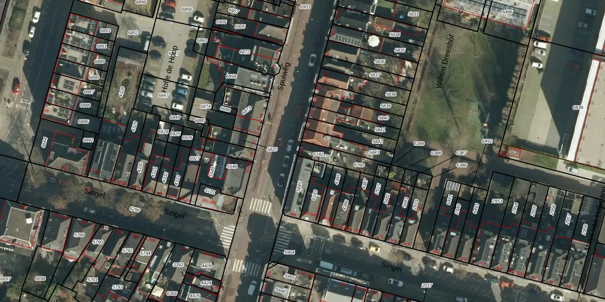Spuiweg 110 is gelegen op kadastraal perceel DDT00D6390. Deze kadastrale aanduiding is uniek en wordt gebruikt door het Kadaster om eigendomsrechten en andere zakelijke rechten vast te leggen. Het perceel maakt onderdeel uit van de kadastrale gemeente Dordrecht.