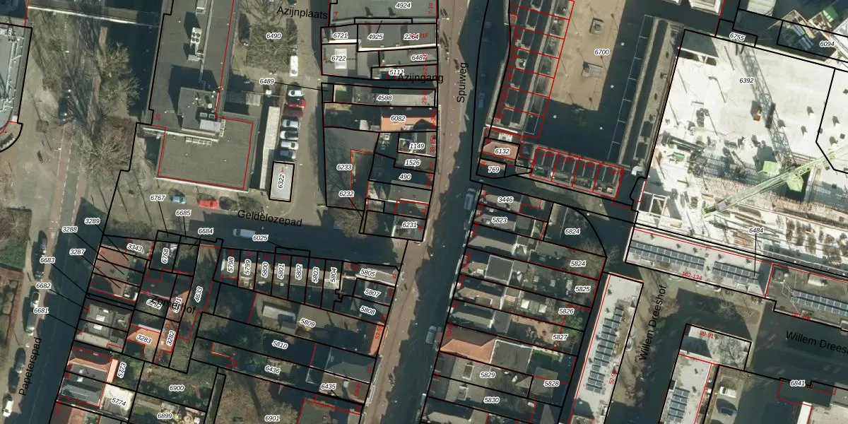 Spuiweg 43 is gelegen op kadastraal perceel DDT00D6233. Deze kadastrale aanduiding is uniek en wordt gebruikt door het Kadaster om eigendomsrechten en andere zakelijke rechten vast te leggen. Het perceel maakt onderdeel uit van de kadastrale gemeente Dordrecht.
