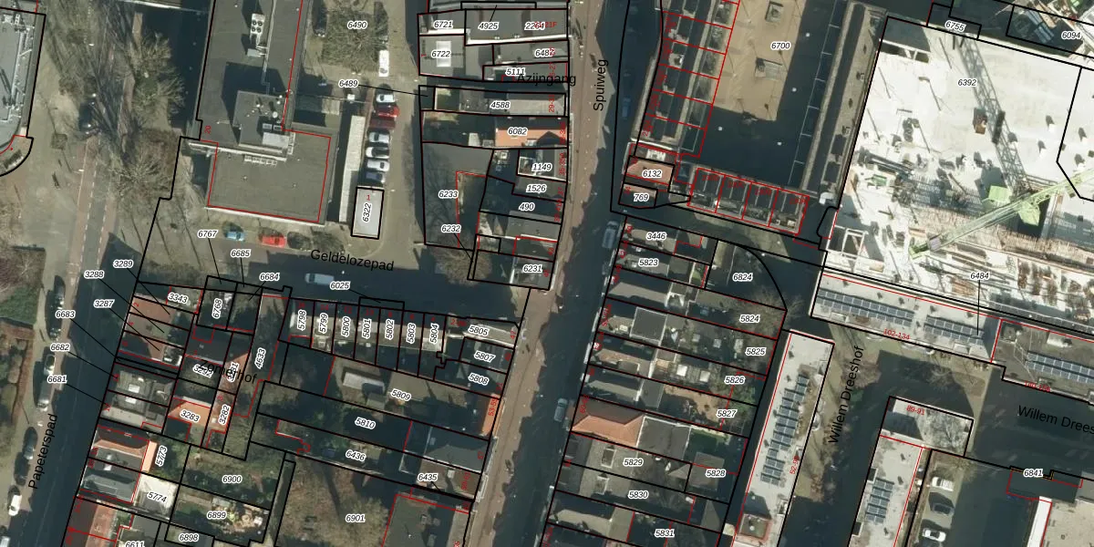 Spuiweg 45 is gelegen op kadastraal perceel DDT00D6231. Deze kadastrale aanduiding is uniek en wordt gebruikt door het Kadaster om eigendomsrechten en andere zakelijke rechten vast te leggen. Het perceel maakt onderdeel uit van de kadastrale gemeente Dordrecht.