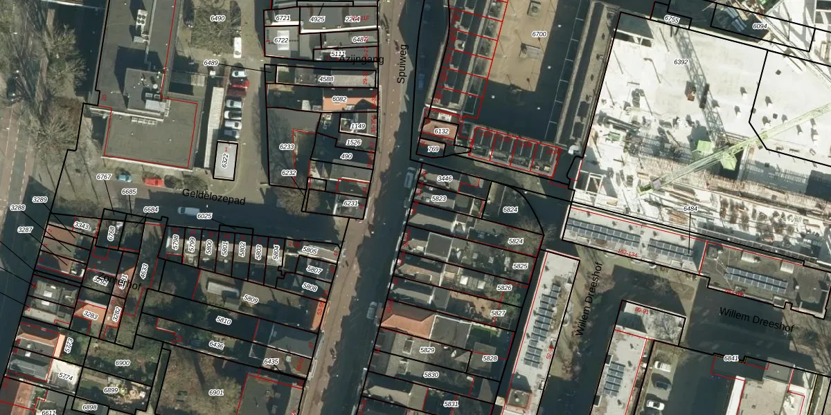 Spuiweg 46 is gelegen op kadastraal perceel DDT00D5824. Deze kadastrale aanduiding is uniek en wordt gebruikt door het Kadaster om eigendomsrechten en andere zakelijke rechten vast te leggen. Het perceel maakt onderdeel uit van de kadastrale gemeente Dordrecht.