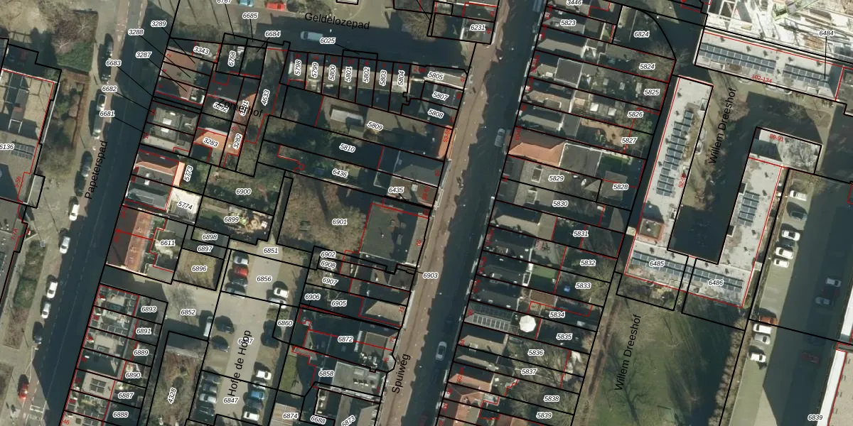 Het perceel waarop Spuiweg 63 staat heeft een oppervlakte van 507 m². Dit is een groot perceel. De perceeloppervlakte wordt geregistreerd door het Kadaster. Gedetailleerde informatie over de maten van dit perceel kunt u vinden in het rapport Kadastrale kaart met maatvoering van Spuiweg 63.