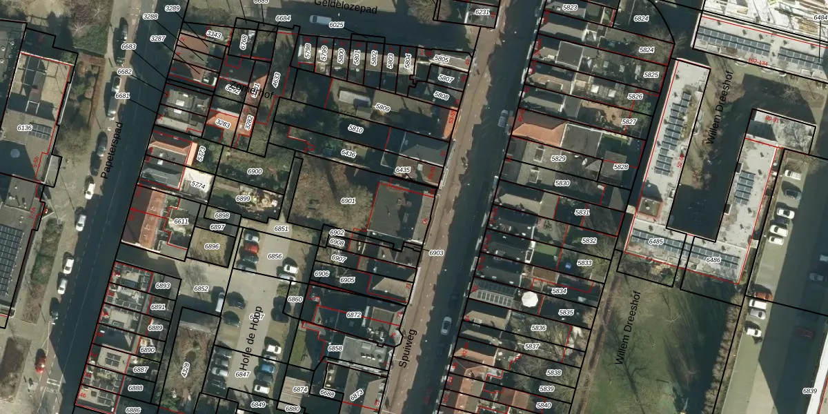 Het perceel waarop Spuiweg 65 staat heeft een oppervlakte van 507 m². Dit is een groot perceel. De perceeloppervlakte wordt geregistreerd door het Kadaster. Gedetailleerde informatie over de maten van dit perceel kunt u vinden in het rapport Kadastrale kaart met maatvoering van Spuiweg 65.