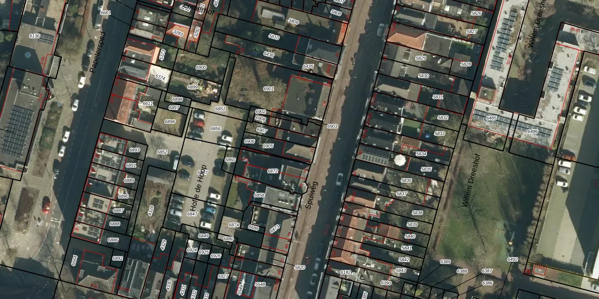 Spuiweg 75 is gelegen op kadastraal perceel DDT00D6905. Deze kadastrale aanduiding is uniek en wordt gebruikt door het Kadaster om eigendomsrechten en andere zakelijke rechten vast te leggen. Het perceel maakt onderdeel uit van de kadastrale gemeente Dordrecht.