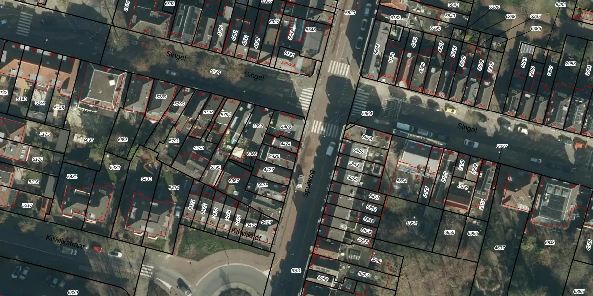 Het perceel waarop Spuiweg 95 staat heeft een oppervlakte van 52 m². Dit is een klein perceel. De perceeloppervlakte wordt geregistreerd door het Kadaster. Gedetailleerde informatie over de maten van dit perceel kunt u vinden in het rapport Kadastrale kaart met maatvoering van Spuiweg 95.
