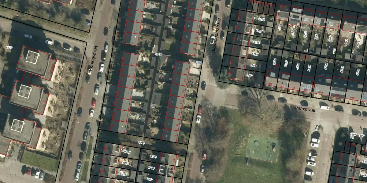 Stadhouderstraat 24 is gelegen op kadastraal perceel DBD00A6030. Deze kadastrale aanduiding is uniek en wordt gebruikt door het Kadaster om eigendomsrechten en andere zakelijke rechten vast te leggen. Het perceel maakt onderdeel uit van de kadastrale gemeente Dubbeldam.