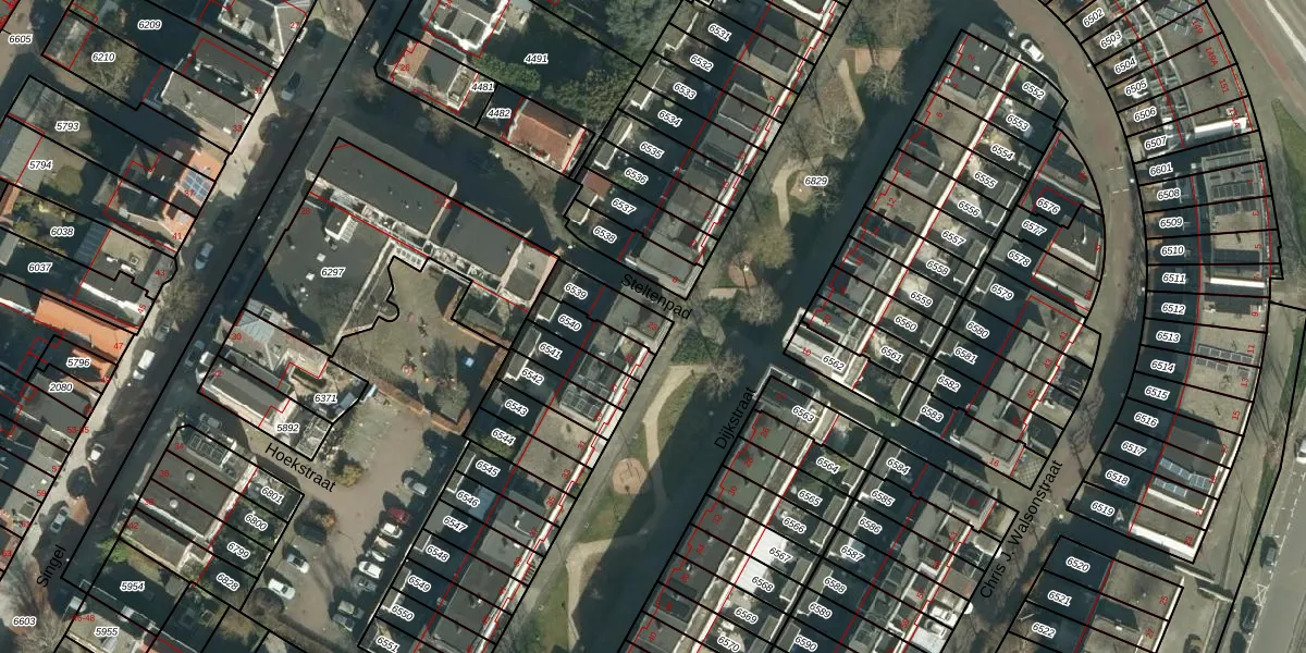 Het perceel waarop het adres ligt is DDT00-C-6539. De afkorting 'DDT00' staat voor kadastrale gemeente Dordrecht. De gemiddelde perceelgrootte in Dordrecht is 2475,68 m². Dit perceel is kleiner: de perceeloppervlakte bedraagt 109 m². Het kleinste perceel in de kadastrale gemeente is 0 m² groot. De grootste perceeloppervlakte is 3,41 km². Op het perceel bevinden zich geen andere adressen. In de Basisregistratie Kadaster (BRK) werden de grenzen van het perceel geregistreerd op 15-01-2008.