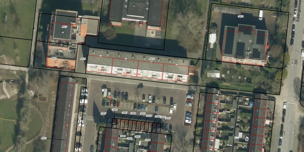 Het adres is gelegen op perceel 4824 in de sectie N en de kadastrale gemeente Dordrecht. De kadastrale aanduiding is aldus DDT00-N-4824. De gemiddelde perceelgrootte in Dordrecht is 2475,62 m². Dit perceel is kleiner: de perceeloppervlakte bedraagt 2285 m². Het grootste perceel in de kadastrale gemeente is 3,41 km². Het kleinste perceel heeft een oppervlakte van 0 m². Op het perceel liggen in totaal 41 adressen. De huidige grenzen van het perceel zijn digitaal in de Basisregistratie Kadaster (BRK) geregistreerd op 07-11-2011.