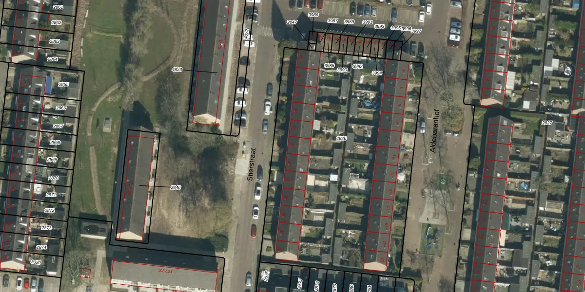 Het perceel waarop Stierstraat 38 staat heeft een oppervlakte van 3550 m². Dit is een zeer groot perceel. De perceeloppervlakte wordt geregistreerd door het Kadaster. Gedetailleerde informatie over de maten van dit perceel kunt u vinden in het rapport Kadastrale kaart met maatvoering van Stierstraat 38.