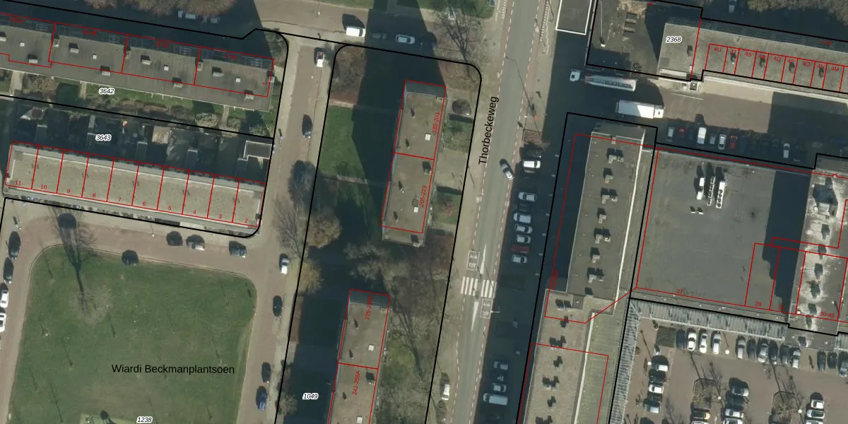 Het perceel waarop Thorbeckeweg 207 staat heeft een oppervlakte van 5896 m². Dit is een zeer groot perceel. De perceeloppervlakte wordt geregistreerd door het Kadaster. Gedetailleerde informatie over de maten van dit perceel kunt u vinden in het rapport Kadastrale kaart met maatvoering van Thorbeckeweg 207.